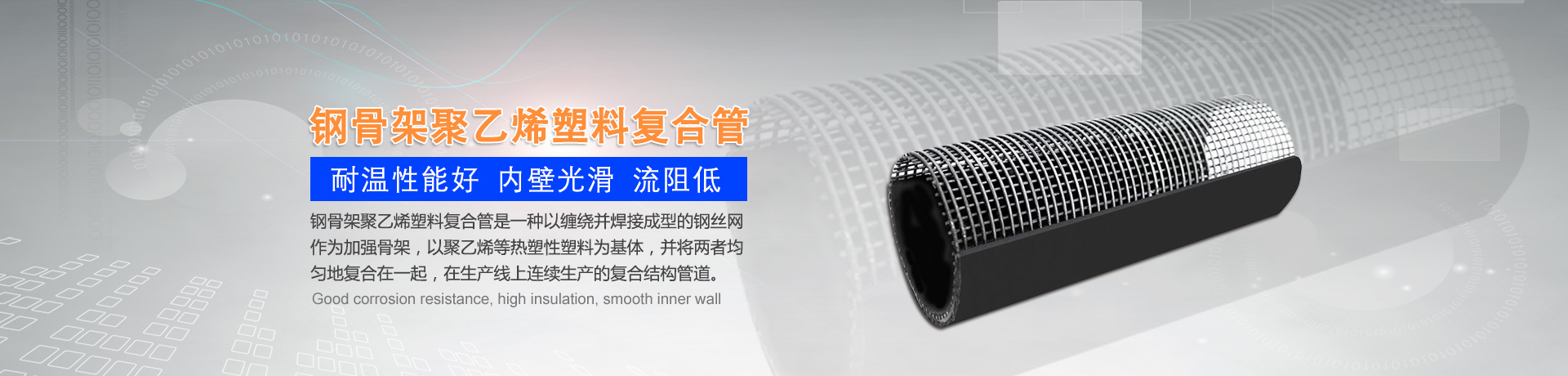 我們主要生產(chǎn)銷售:鋼絲網(wǎng)骨架復(fù)合管、鋼絲網(wǎng)骨架聚乙烯復(fù)合管、孔網(wǎng)鋼帶聚乙烯復(fù)合管、鋼骨架聚乙烯塑料復(fù)合管、電熔管件、HDPE中空壁纏繞管、HDPE內(nèi)肋增強(qiáng)螺旋波紋管、HDPE結(jié)構(gòu)壁增強(qiáng)B型管等一系列產(chǎn)品。復(fù)合管以其特有的防腐蝕、耐磨、耐高溫、抗嚴(yán)寒、耐壓、抗蠕變、穩(wěn)定性好、安裝方便等特點(diǎn),逐步取代各類金屬管件和塑料管件,被應(yīng)用于消防、石油、化工、供水、采礦、海水輸送等領(lǐng)域...